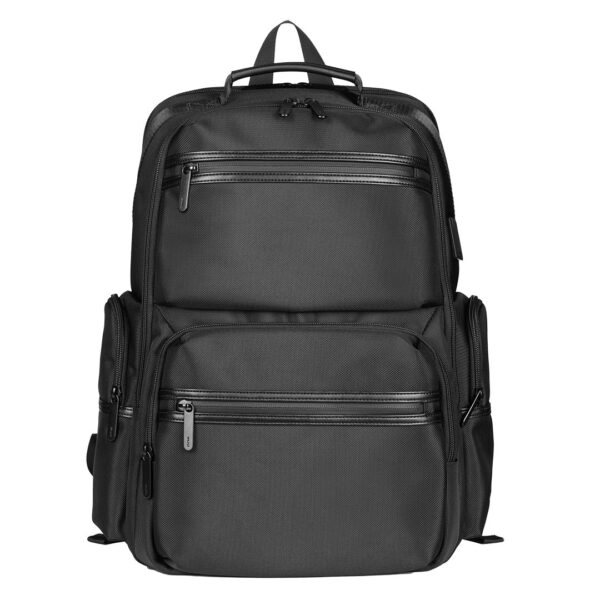 Poslovni ranac dva odeljka, dodatni odeljci za tablet i laptop veličine ekrana 15", tri džepa sa rajsferšlusom napred, dva džepa sa rajsferšlusom sa strane, sa zadnje strane postava